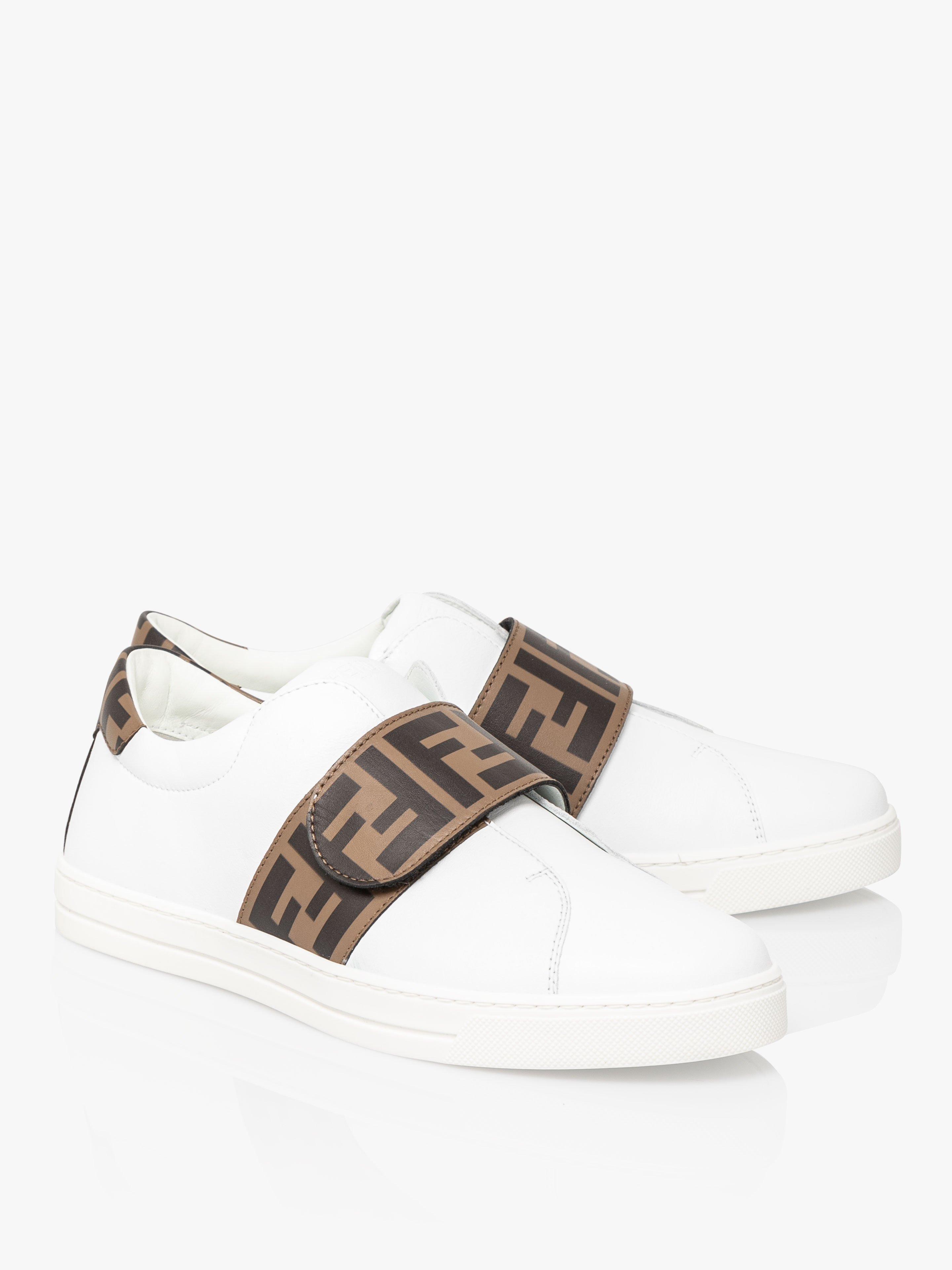 Fendi ruffle shoes. High Top Sneakers with Embossed Logo in White and Brown. Similar products also available. Upbeat creativity is displayed through splashes of bright block color and eye-catching yet refined graphic prints.